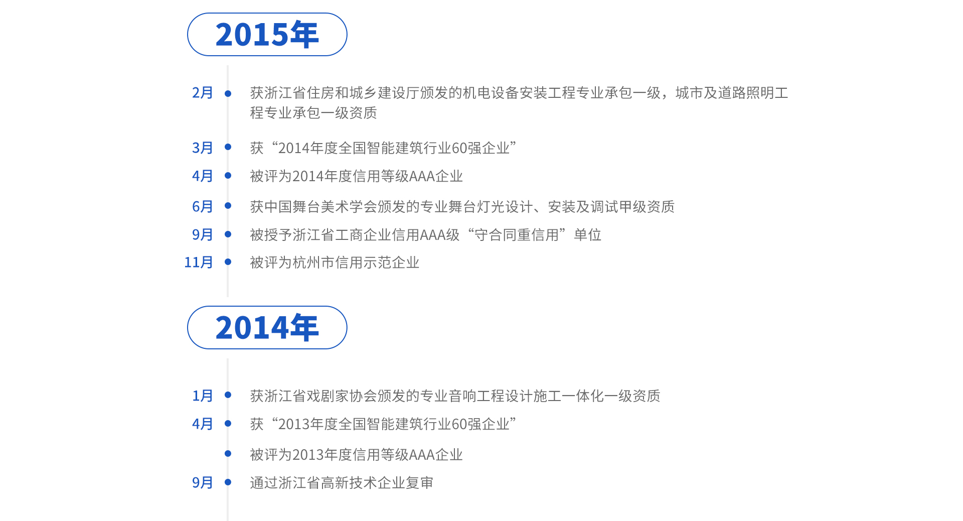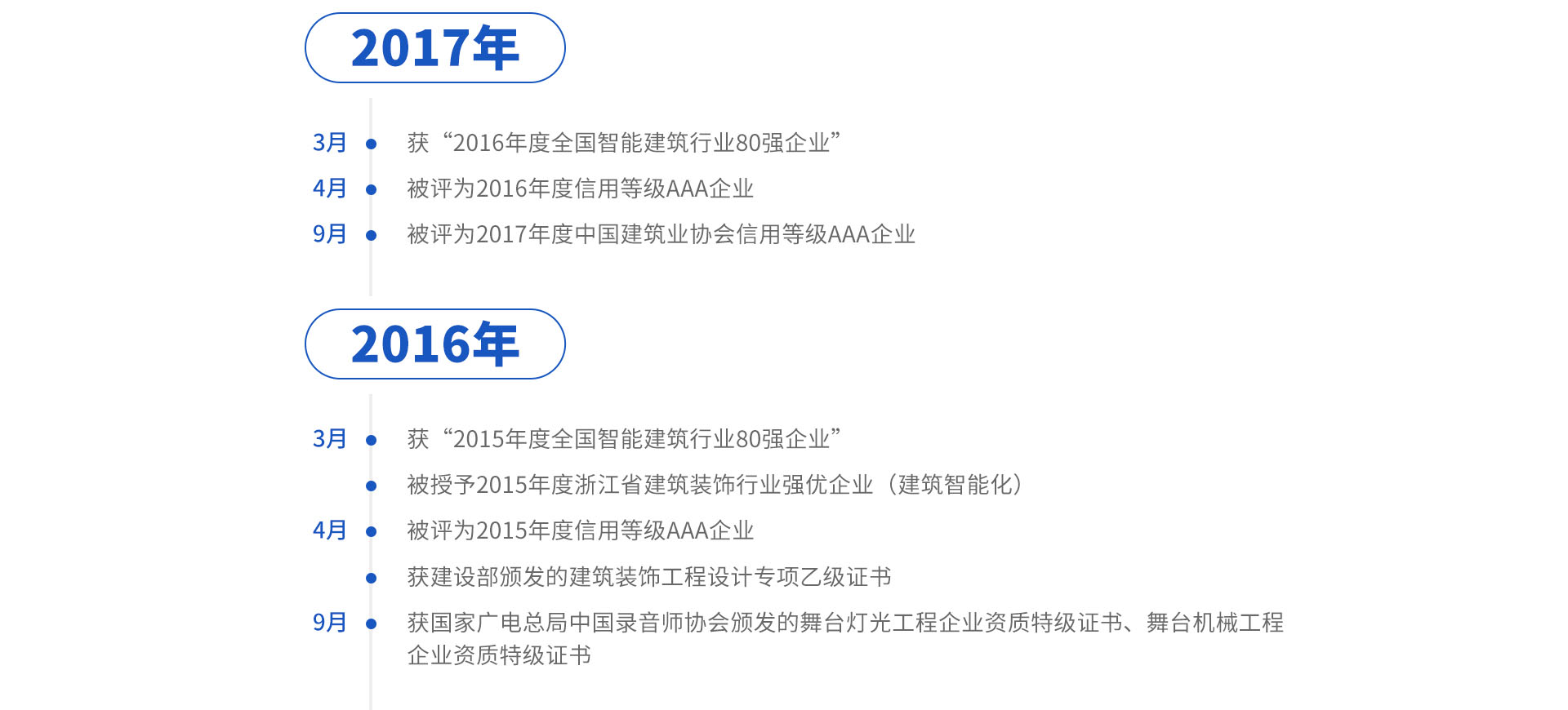 公司业已形成较高的行业知名度和美誉度,成功完成国家、省、市级大型工程共1000多个项目,连续11年进入“全国建筑智能化年度完成工程额前80名企业”名单,在文化场馆(大剧院、会议会展中心、广电中心、三馆等),体育场馆(体育场、体育馆、全民健身中心、体育公园等),文旅酒店等建筑智能化照明、专业灯光音响舞台机械、体育工艺集成方面排名国内同行前列。